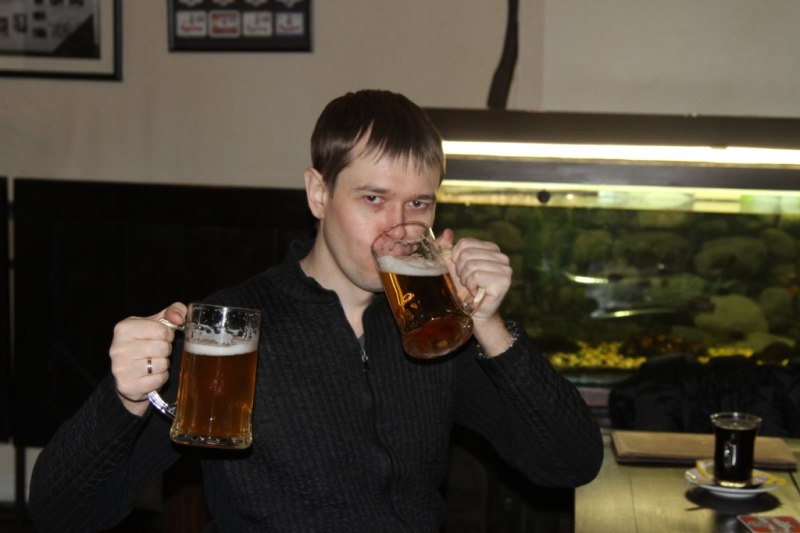 Утром 19 февраля мы пошли гулять по Праге. Моросил небольшой дождик, но это не испортило нам впечатления от красивого, старинного города, знакомство с которым сопровождалось очень интересным рассказом Дмитрия. Это даже и сравнивать не стоит с тем, что можно услышать из уст гидов, которые водят большие группы туристов. У меня от подобных рассказов уже через 20 минут болит голова….. Дмитрий знает про каждый уголок Праги. От него мы услышали много интересных, запоминающихся, а порой забавных истории. Это просто удивительно! Уже в первой половине экскурсии мы не смогли отказаться от соблазна и зашли в пивоварню, чтобы попробовать настоящего чешского пива. Ох, сколько потом ещё было пива… Но об этом чуть позже). Экскурсия продолжилась…. а Прага нравилась нам всё больше и больше… На обед мы отправились в очень интересную пивоварню, находящуюся не в центре Праги. Там нас ждала вкусная еда, живая чешская атмосфера и свежесваренное пиво. Что ещё надо для счастья?